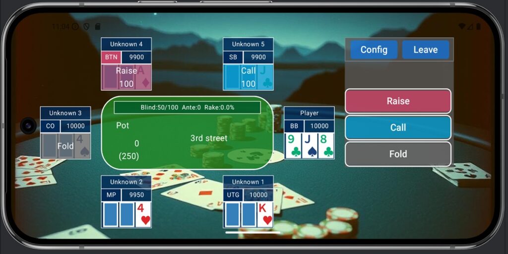 ゲームの開発に手が取られていて、相変わらず文章を書けていないのであるが、今回は開発中のゲームの画面イメージを紹介しつつ、セブンカード・スタッド(7 Card Stud)といわれるゲームのルールについて簡単に説明しようと思う。セブンカード・スタッドはテキサスホールデムがポーカーの標準的なルールとして流行する以前によくプレイされていたポーカーであるらしく、テキサスホールデムの前身とも言えるゲームであるかもしれない。現在ではあまりプレイされることがないらしいが、筆者が開発しているゲームでは一応プレイできる(NPC相手に対戦できるので人を集める必要がない形式でプレイできる)ようにしているのでルールを説明しておこう。