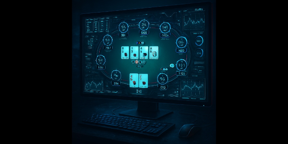 文章を書き終わってから実装しようと思っていたのであるが、ほぼ同時に実装が終わってしまって、筆者が開発したポーカーアプリ”Exotic Poker”の最新バージョンではHUDが見れるようになっている。アプリの宣伝も兼ねて、画面を紹介しよう(数値はテストデータなので適当)。